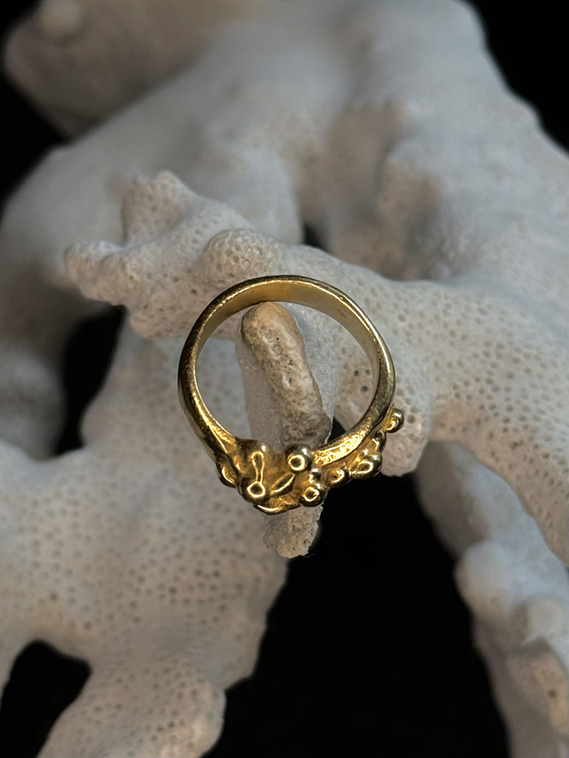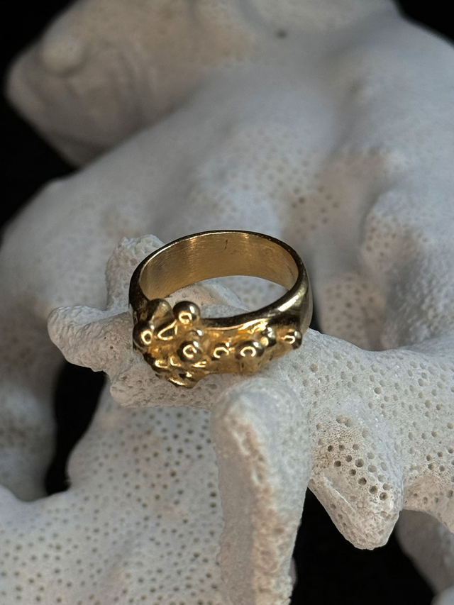Grappée finement de petites boules, comme sa grande sœur, elle se distingue par un contraste brillant et mat.